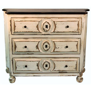 Features beaded trim and carved wood accents with antiqued drawer pulls in a Weathered Cream and Taupe Grey finish. Specifications Overall Dimensio...