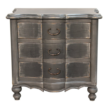 The 3-drawer Gray Venetian Nightstand features french scalloped edges, turned bun feet, and antiqued drawer pulls. Specifications Overall Dimension...