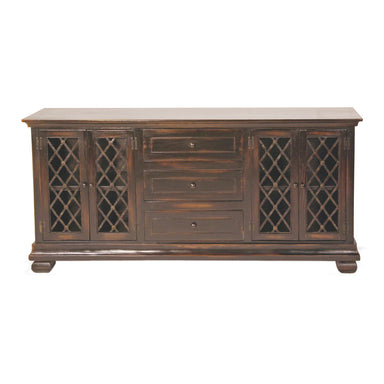 Finished in distressed black with intricate scroll panels, the Providence Sideboard has an elegant, antique look. Features 2 drawers for convenie...