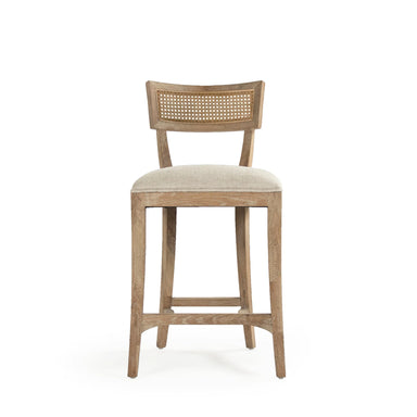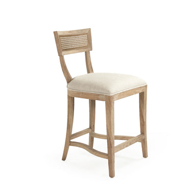 Elegant caned back counter height bar stool upholstered in natural linen with a limed grey oak finish. CollectionCarvell Dining & Bar Chairs ...