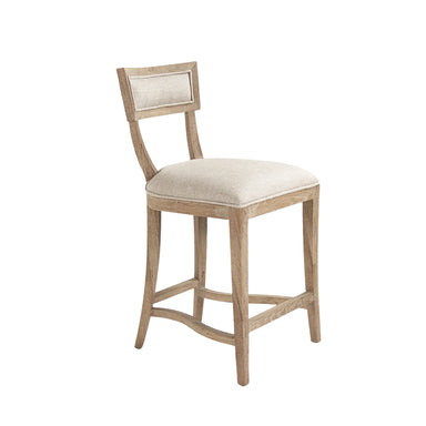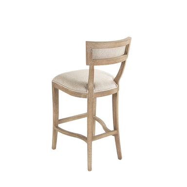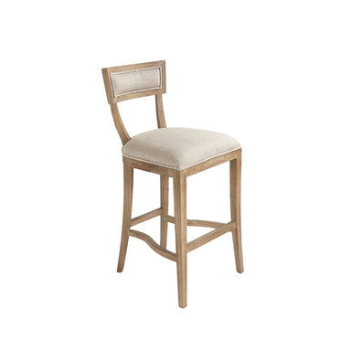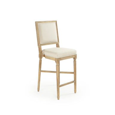 Square back bar stool upholstered in natural linen on limed grey oak frame. Dimensions (in)17W x 46.75H x 18D FinishLimed Grey, Natural Material(...