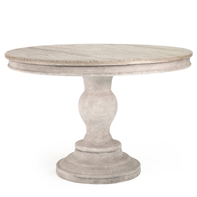 Crafted from durable wood with distressed finishes and meticulous detailing, a round French country dining table set complements both traditional and modern interiors. These farmhouse circle tables offer timeless appeal, making them a lasting investment in both the comfort and aesthetic of your home. Each pedestal farm table features a sturdy central base, combining stability with classic style—perfect for gatherings and everyday dining.