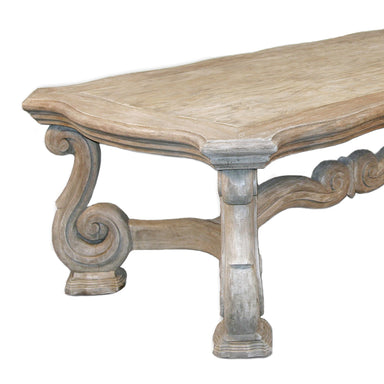Each piece combines the graceful lines of French design with the practicality of farmhouse construction. Distressed finishes, natural wood tones, and hand-carved trestle bases bring subtle European character to your space—inviting, enduring, and effortlessly beautiful.