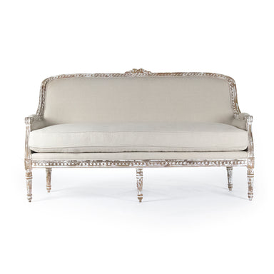 The Maison Sofa lends living rooms and bedrooms a touch of romantic and vintage-inspired style. An ornately carved limed gray oak wood frame with...