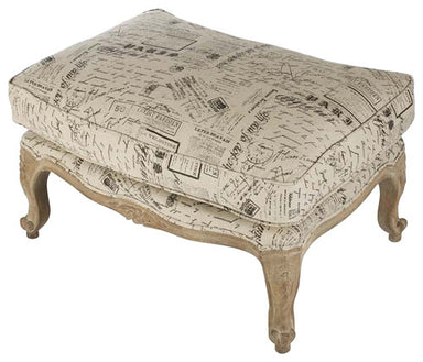 Rectangular ottoman upholstered in natural linen with Paris-themed printed script on limed grey oak frame. Pair with our Paris Club Chair for a m...