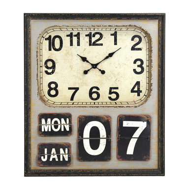 50's inspired wooden clock with adjustable calendar dates in rustic finish. Dimensions (in)30.5W x 35.5H x 4D FinishAntique Black Material(s)MDF,...