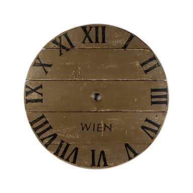 Clock face with black roman numeral numbers on distressed brown background. Inscribed with the word "Vienna" in German. Dimensions (in)36W x 36H ...