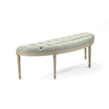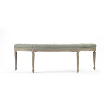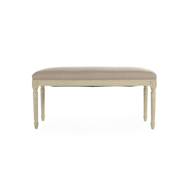 Rectangular bench upholstered in natural linen on distressed ivory oak frame. Dimensions (in)40W x 18H x 15D FinishDistressed Off White, Natural ...