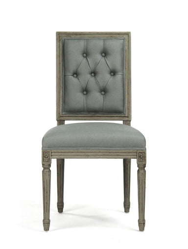 Caneback side chair with removable natural cream linen skirt on limed grey oak frame. Dimensions (in)20.5W x 39H x 18.5D FinishLimed Grey, Natura...