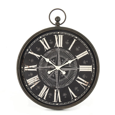 Compass face wall clock in antique black finish. Dimensions (in)30W x 37H x 3D FinishAntique Black Material(s)Iron Features- Compass face- Antiqu...