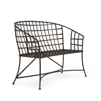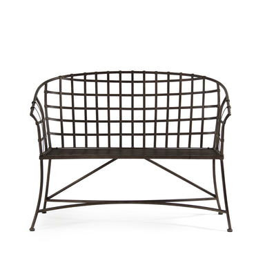 Rustic dark metal bench. Seats 2. Also in this Collection:- Iron Chair- Iron Rocking Chair Dimensions (in)44.5W x 34.5H x 20.5D FinishDark Mate...