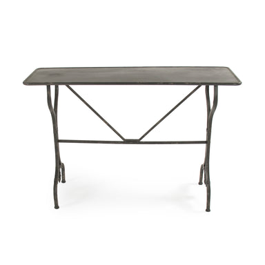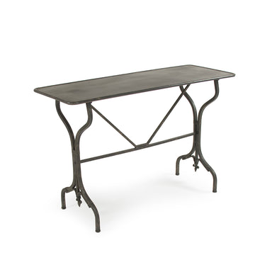 Iron accent table in dark grey finish with light distressing. Dimensions (in)48W x 31.25H x 18D FinishDark Grey Material(s)Iron Features- Lightl...