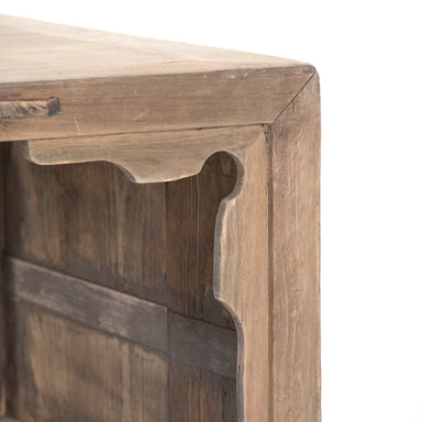 Coffee table with unique corner carved details in a natural dry finish. Dimensions (in)78.75W x 17.75H x 27.5D FinishAntique Finish Material(s)El...
