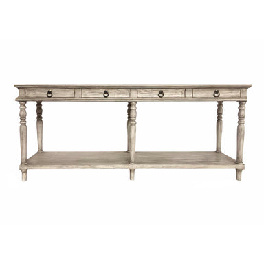 The Ferrand Console Table is a sophisticated addition to any room, blending functionality and timeless design. Featuring a weathered French Crème f...