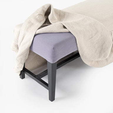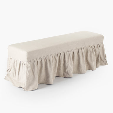 Rectangular skirted bench with linen-cotton slip cover. Overall Dimensions (in)57.5W x 18.75H x 16.25DBase Height (from floor to cushion)13.5"Cu...