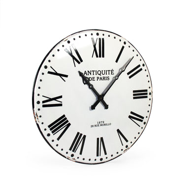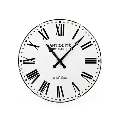 Roman numeral clock with distressed black numbers and dots on white background. Dimensions (in)44W x 44H x 2D FinishDistressed White with Black N...