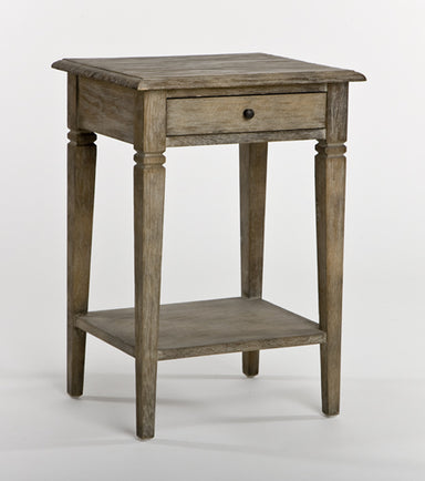 Limed grey oak end table with a single drawer. Can also be used as a nightstand. Dimensions (in)19W x 27H x 16.5D FinishLimed Grey Material(s)Oak...