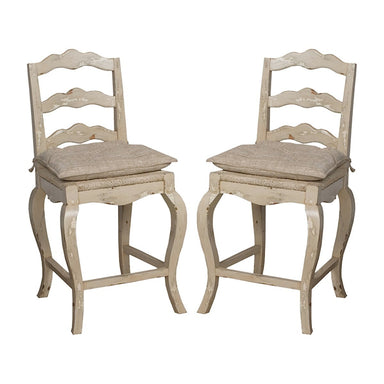 Crossroads Rosa finish on hand-crafted counter stool with rush seat with oyster fabric cushion. Sold in pairs. Dimensions (in)44H x 20W x 21.5L F...