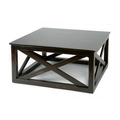 The Montgomery Coffee Table in distressed black features a cross-beam design that adds a classic farmhouse feel to any decor. MaterialWood Finis...