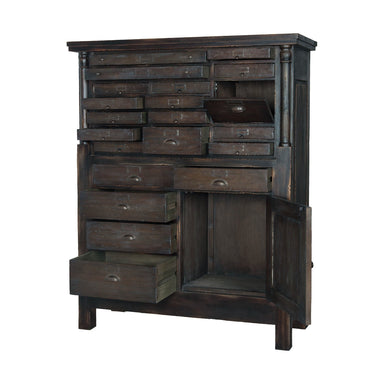 Ash Black Stain finish on chest body with Heritage Grey Stain Light Distress on door/drawer fronts. Antiqued hardware. Dimensions (in)59.8H x 48W...