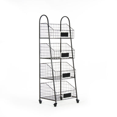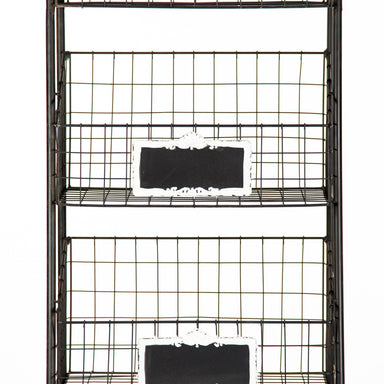 Perfect for the country and farmhouse kitchen, this storage basket rack features an antique black finish with black/white plaques for labeling. D...